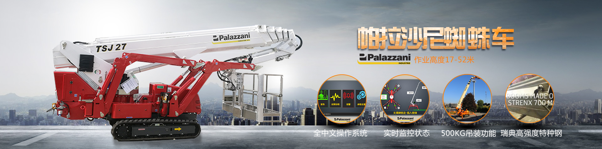 重慶??怂故且患覍?zhuān)業(yè)提供進(jìn)口高空作業(yè)設(shè)備整體解決方案的公司,主要銷(xiāo)售租賃維修JLG高空作業(yè)平臺(tái)車(chē)、Instant UpRight鋁合金快裝腳手架、意大利Easylift(伊斯特)蜘蛛機(jī)、CMC蜘蛛車(chē)、Palazzani(帕拉沙尼)輪式蜘蛛車(chē)、Multitel(邁迪特)履帶型蜘蛛式高空作業(yè)車(chē),JLG高空作業(yè)平臺(tái)主要有曲臂升降機(jī)、單桅桿升降車(chē)、剪叉式升降平臺(tái)、直臂式高空作業(yè)車(chē)、垂直曲臂高空作業(yè)車(chē)、拖車(chē)式曲臂高空作業(yè)平臺(tái)、伸縮臂叉裝車(chē)等;提供一流的產(chǎn)品質(zhì)量和完善的售后服務(wù)是我們的宗旨。我們?cè)诒本?、天津、上海、重慶、廣州、深圳、杭州、蘇州、青島、成都、昆明、武漢、長(zhǎng)沙、南昌、沈陽(yáng)、吉林、長(zhǎng)春、哈爾濱、呼和浩特、福州、西安、新疆等地均設(shè)有JLG高空作業(yè)平臺(tái)銷(xiāo)售和售后服務(wù)機(jī)構(gòu)。公司創(chuàng)辦以來(lái),一直堅(jiān)持產(chǎn)品銷(xiāo)售與技術(shù)支持及服務(wù)相結(jié)合的經(jīng)營(yíng)理念,依靠科學(xué)的管理,憑借高度的責(zé)任心和敬業(yè)精神,公司代理的高空作業(yè)平臺(tái)、蜘蛛車(chē)和鋁合金腳手架銷(xiāo)往全國(guó)各地電力、石化、鐵路、航天航空、軍工、工業(yè)制造業(yè)、學(xué)校、酒店的設(shè)備安裝、設(shè)施維護(hù)與保潔等領(lǐng)域。